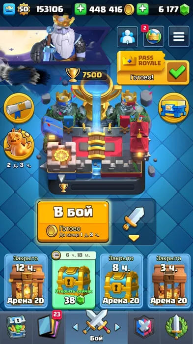 🃏Карты: 97/107; ⚡Легендарные карты: 17/18; 🏆Кубки: 4435;