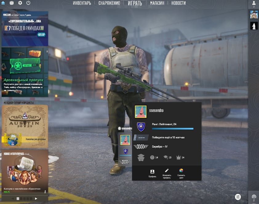 ⭐️Звание: Silver 2; 🌟Prime Status: Есть; ⏱Часов в игре: 61;