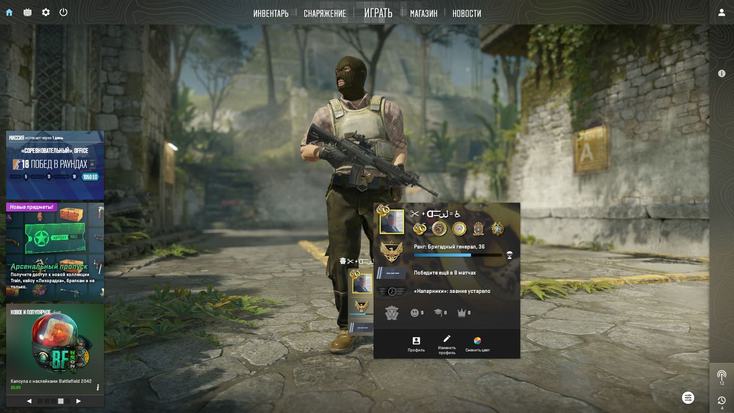 ⭐️Звание: Gold Nova 1; 🌟Prime Status: Есть; ⏱Часов в игре: 1985;