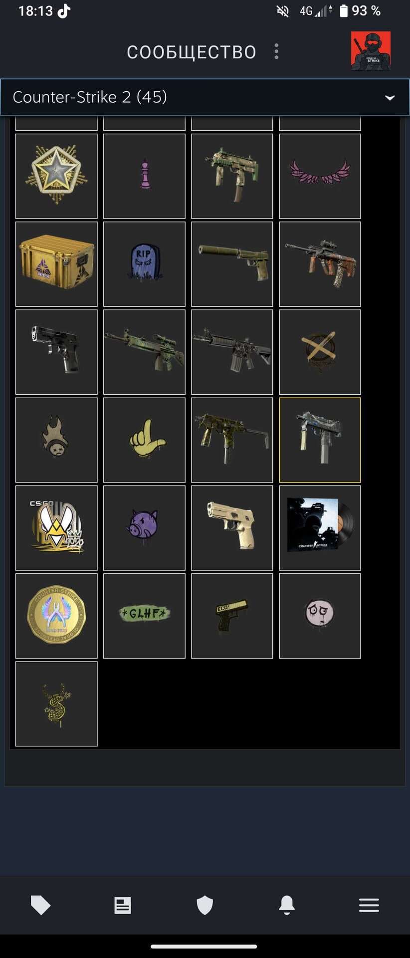 ✨Предметов в инвентаре: 45;