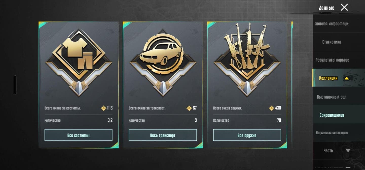 👚Топ костюмы: 25;⭐️Royale Pass: с 3 сезонна;🌈Скины на оружие: 90;