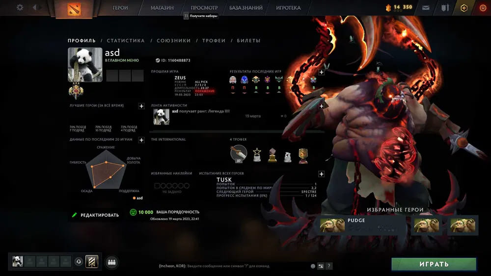 🏅 Ранг: Легендарный⭐️ Уровень: 275💰 CP: 895🕹 Игры: 4186✅ Все привязки отсутствуют