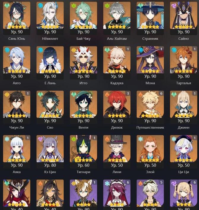 📈 Ранг: 58 🧍♀️ Персонажи: Арлекино, Нахида, Тигнари и другие ✨ Примогемы: 484