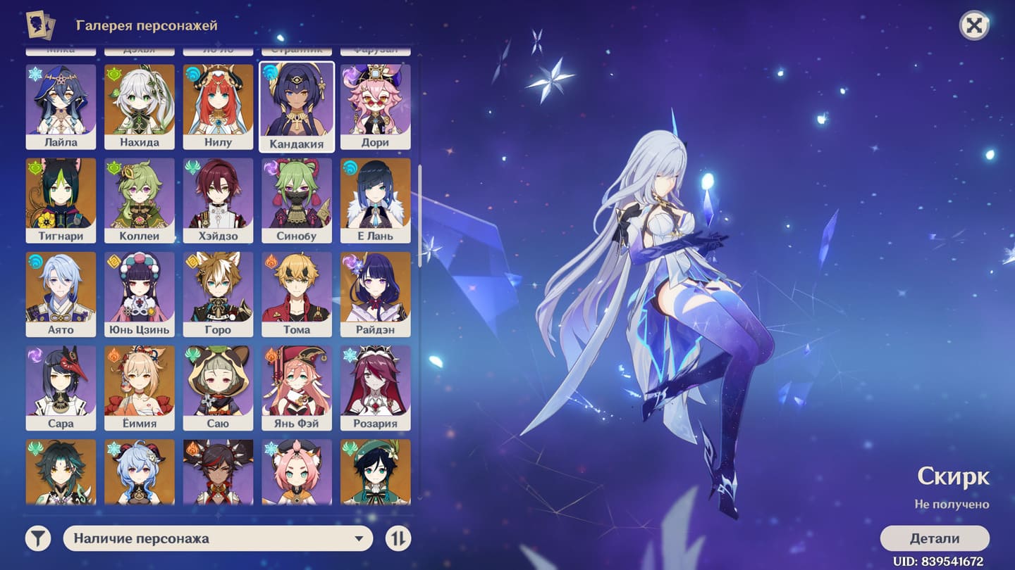 📈 Ранг: 59 🧍♀️ Персонажи: Нахида, Нилу, Е Лань и другие 🦾 Оружие: 5 звезд ✨ Примогемы: 98